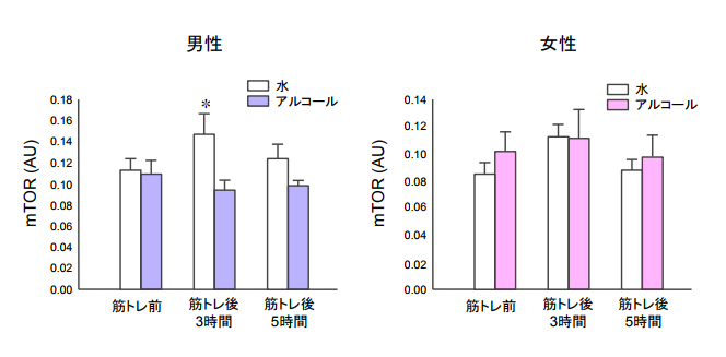 しかし、運動後すぐにアルコールを飲むと、これらのホルモンの分泌が抑制されてしまい、筋肉の回復が30%も減少するという研究結果が報告されています。
