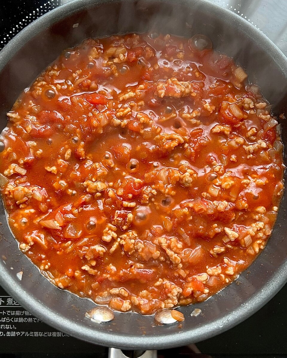 @moani_unite1日キッチンに居たから疲れた ミートソース、ティラミス、ショートケーキ 夕飯のキッシュとミートドリア やりすぎたわ