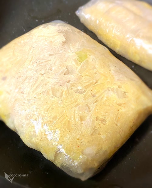 @mi_sanchannelライスペーパーをぬるま湯にちょっと浸してシソ(さっきの100均のシソ用BOXに入れて置くと日持ちがいい★)とカニカマ、チーズをのせて巻き巻きし😄同時に端っこで麺つゆ、水、ネギ入れた卵焼きとウインナー焼きつつ卵液の皿に青のりと小麦粉、水いれて磯辺揚げも作る😄 #おうちごはん #お弁当作り pic.x.com/FDCJD6OXO0