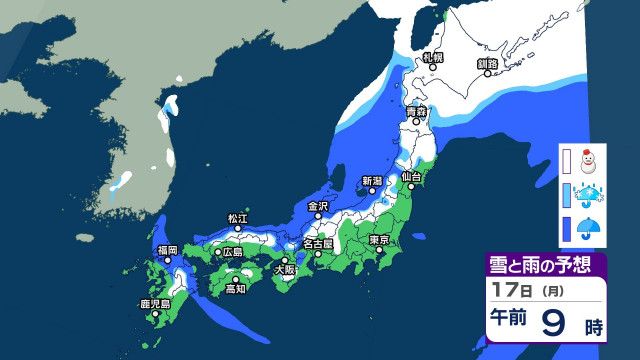 | 【17日の天気】北日本や日本海側の広範囲で雪や雨 北日本の太平洋側は大雪のところも 北日本で交通機関の乱れに警戒必要 …あすは北日本や日本海側の広い範囲で雪や雨となる見込みです。発達する低気圧の影響で、北日本は太平洋側でも雪の降り方が強まって、大雪となる所があるでしょ… (出典:TBS NEWS DIG Powered by JNN) |